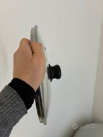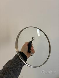 Vendo n. 3 coperchi di vetro con bordi in acciaio e manico di plastica. Misure: - diametro 28, con valvola, con qualche segno sul vetro dicuto al alvaggio con la lavastovigle - diametro 20, senza valvola - diametro 14, senza valvola Vendo perché ho comparto un set intero di pentole nuovo, ma sono ancora molto buoni e fanno il loro lavoro. VENDO ANCHE SEPARATI, IN CASO.