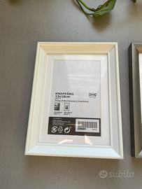 3 cornici 13x18 1. Silverhojden Ikea colore argento 2. Knoppang Ikea colore bianco 3. Altra cornice bordo decorato argento/oro Ottime condizioni Vendibili anche separatamente