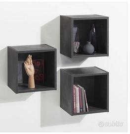 vendo 3 cubi pensili grigio scuro, già assemblati come in foto e mai fissati al muro a causa di un errore di acquisto.