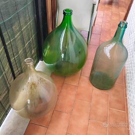 3 damigiane in vetro varie colori e forme