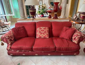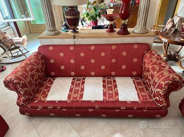 Vendo divani in stile. 2 divani 2 posti ( 178 cm ) e 1 divano 3 posti (243cm) in tessuto damascato con alcune imperfezioni dovute all' uso come da foto .