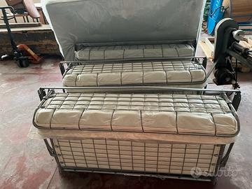 Tre divani letto con due materassi nuovi incelofanati. Mettendo una testiera possono diventare letti