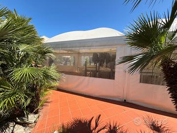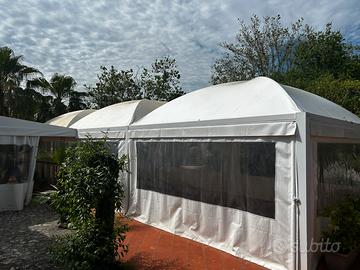 Vendesi 3 gazebo in pvc 5x5 in ferro zincato verniciato a polvere colore bianco piu una pergola addossata dim . 6,5x4,5 con telo pvc. Pali 15x15 cm. Compresivo di teli colore bianco scorevoli e finestre in cristal trasparenti .Ottimo stato pari a nuovo !!! Per info contatare il nr 3288759485
