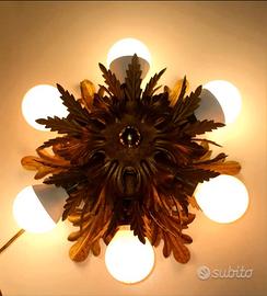 Il produttore è banci Firenze Set di 3 eleganti e rare lampade da parete o soffitto fiorentine del 1960. Prodotto in Italia. Design italiano molto elegante, realizzato interamente in metallo placcato oro. Ciascuna delle tre lampade ha sei luci E14 ( per lampadine piccole ). Perfettamente funzionanti. Condizioni vintage molto buone. Nessun danno ai lampadari. Funzionano con cablaggio a 220V . Il cablaggio è originale e adatto a tutti i paesi. Adatte a tutti gli ambienti, sono molto decorative. Il prezzo è per tutte le lampade insieme. Diametro totale con lampadine : 26 cm Diametro senza lampadine: 23 cm Altezza: 10 cm. la richiesta economica di queste lampade sono molto più alte. vengono venduti senza lampadine.