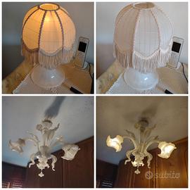 -Due abat jour da comodino (vetro di Murano) abbinate al lampadario con luci rosa