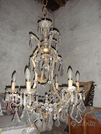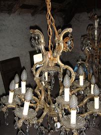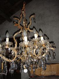 3 Lampadari in cristallo ottone antico