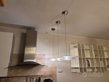 Vendo numero 3 lampade in vetro e di design per cucina o altri ambienti adatti. Le lampade hanno un dimmer sul filo a sfioro che permette di regolare l'intensità della luce. Regalo 3 lampadine ad incandescenza (dimmerabili) e 5 lampadine a Led (non dimmerabili).