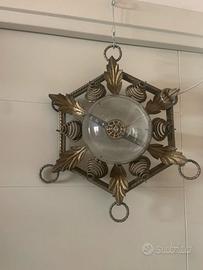 2)plafoniera artigianale in ferro battuto dorato anni 70