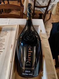 Cassa Legno Jeroboam 3 litri Dirupo Valdobbiadene Prosecco Superiore Docg Brut - Andreola Vitigno: 90% Glera, 5% Bianchetta, 5% Perera. Colore luminoso paglierino. Profumi di frutta a polpa bianca, ginestra e folate saline. Al palato è tagliente e brioso per decise sapitidà e freschezza. Ottimo con bufala e formaggi semi stagionati. Al col 11.5% Bottiglia 3000 ml. ritiro a mano Torino o provincia o spedizione