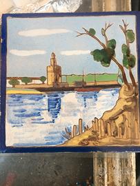 3 mattonelle smaltate a fuoco, ceramica Triana, risalenti al 1930, della città di Siviglia.