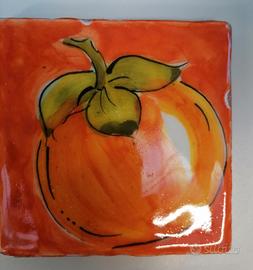 Tre mattonelle di ceramica dipinte a mano con tema frutta, cachi, albicocca, ciliege e 1 omaggio con pera. misure 10x10 cm circa Posso essere usate per la cucina, per gli esterni, lavoro di muratura, paraschizzi, si possono appendere, lavori fai da te ecc Pezzi unici dipinti a mano. Vendo causa trasloco imminente. No spedizione Scrivimi pure per info o per accordi sul ritiro. Grazie.