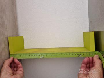 3 Mensole da parete verdi. Utilizzate in cucina per un paio di anni, ma in perfetto stato (solo da pulire, cosa che farò) Vendo per cambio casa. Le 3 mensole hanno dimensioni (lunghezze) differenti: 42cm, 34cm, 26cm