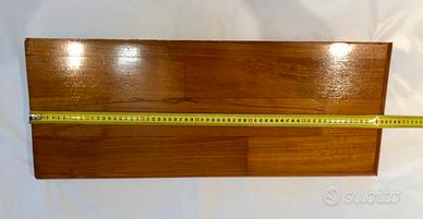 3 Mensole in teak lucido in varie dimensioni. Semicerchio: - 93x33x3 2 rettangolari: - 65x26x3cm - 62x22x2cm Vendibili anche singolarmente: 40€ l’una. tot. 120€