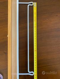 Serie di 3 mensoline identiche, da appendere in linea oppure una sopra l'altra, perfette per la cucina o la camera da letto, ma anche in studio. Mai usate. Materiale legno mdf abbastanza chiaro e metallo bianco. Misure in foto. Prezzo si riferisce alle 3 insieme.