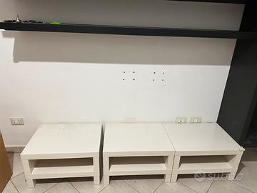 Vendo 3 mobiletti Ikea aperti, organizzerò, porta TV o porta qualunque cosa. Mobili da salotto k varie destinazioni. Ottimo stato. Misure cadauno 46,5 x 59,5 cm. Sono accostabili o posso essere anche separati.