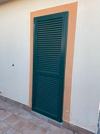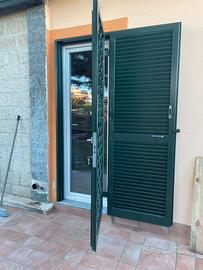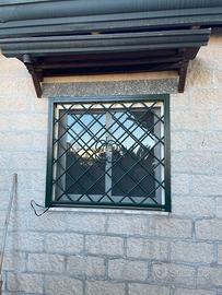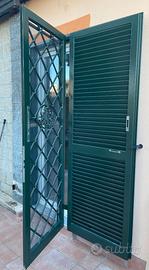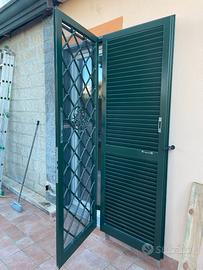 Numero 3 persiane con grate in ferro verniciate a fuoco con due serrature separate complete di portafinestra in PVC bianco L 80 cm. H 220, completo di finestra in alluminio scorrevole con grata francescana sempre verniciata a fuoco.