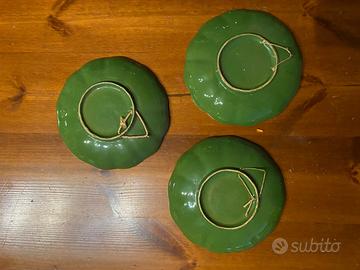 3 piatti dipinti a mano, da appendere. Diametro cm. 19. Possibilità di ritiro a Cassano d'Adda.