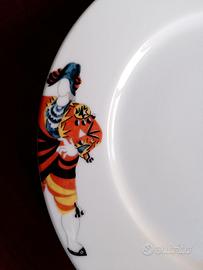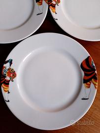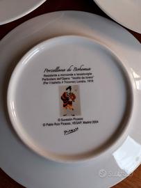 3 piatti piani piccoli serie Picasso porcellana di Bohemia, particolare dell'opera: "Vestito da torero " (per il balletto Il Tricorno) Londra 1919