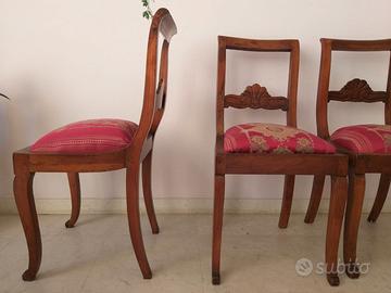 Tre elegantissime poltroncine da salotto o da camera in legno di noce, realizzate nella prima metà del XIX da artigiano veneto. Perfetta la lucidatura a stoppino, molto buona la conservazione generale, con piccole tracce dovute al tempo.