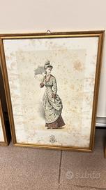3 quadretti con stampe raffiguranti damine. Misura. 28x37 cm