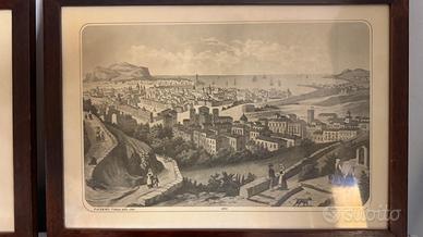 Tre quadri con stampe e cornice anni 70 raffigurati Genova Palermo Torino nei secoli passati