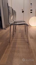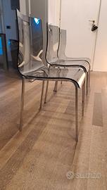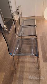 Vendo per inutilizzo 3 sedie con struttura in acciaiolucido e seduta in poliestere color fumè.