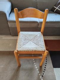 Sedia da cucina dallo stile rustico classicocon struttura in legno e sedile in paglia