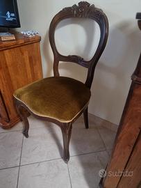 Vendo per cambio arredo 3 sedie d'epoca in legno lavorato con imbottitura in velluto verde degli anni '70. Ritappezzate ed in ottimo stato, come da foto. Solo ritiro a mano su Roma, zona Fonte Nuova nomentana.