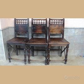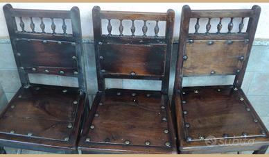 3 sedie rustiche di epoca primi 900 con cuoio e borchie 150 euro tutte{ solo da pulire in buono stato}