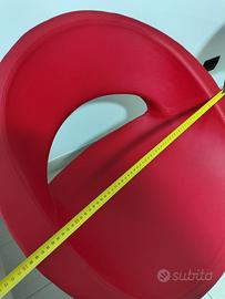 3 poltroncine in ecopelle, di design marchio sesta, colore rosso con piedi argento in metallo e forma tonda