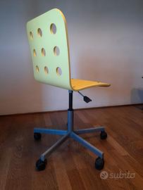 3 sedie girevoli, regolabili in altezza con facilità, seduta di colore giallo e base di colore argento.