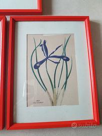 Set di 3 stampe botaniche vintage di Charles Raymond rappresentanti rosa selvatica, iris e orchidea. Misure 27x21cm, in ottime condizioni!