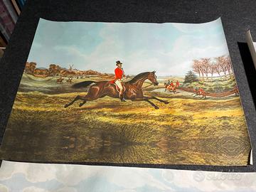 3 stampe su tela a tema caccia inglese d' epoca con cavallo e cani stampate con tecnologia Epson Ultrachrome su tela 100% cotone grammatura 380 di alta qualità "Fine Art", le spedisco arrotolate.
