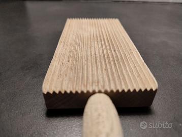 Tre utensili da cucina vintage. Un rullo per bucare la pasta della focaccia, pastiera o crostata prima di infornarla. Un rimuovi nocciolo per denocciolare olive, amarene o ciliegie e uno strumento per rigare gli gnocchi. Sono pulitissimi come se non fossero mai stati usati.