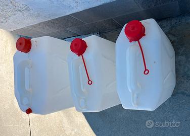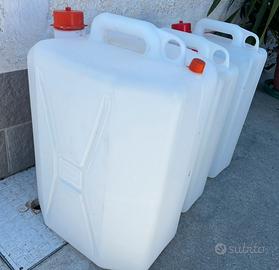 Vendo 3 taniche in plastica pari al nuovo usato una sola volta con acqua potabile causa sospensione rete idrica.