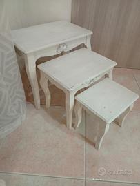 vendo 3 tavolini a scaletta di legno bianco da pitturare un po