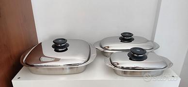 Vendo 3 teglie AMC con coperchio. Dimensioni: - Grande: 40x34cm - Media: 40x22cm - Piccola: 34x18cm