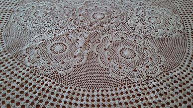 -COPRITAVOLO vintage, lavorato a mano, rotondo, colore ecru. Mai utilizzato. Diametro cm 135 circa.