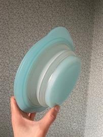 REGALO: tre Tupperware comodissimi perché pieghevoli (vedi foto), occupano poco spazio. Sono due azzurri di 21 cm di diametro e uno giallo di 19. Hanno tutti e tre il loro coperchio. Ritiro a Rapallo in data e orario da concordare.
