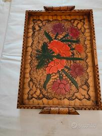 3 vassoi in legno decorati