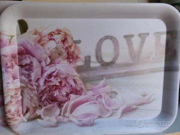 3 vassoi in pvc fondo bianco con decoro floreale lunghezza cm 43, larghezza cm 32.