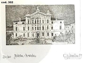 Oggetto: USATO - 1979 - Due quadri con cornici in legno e stampa in serigrafia, raffiguranti Villa Breda e vecchio centro di Ponte di Brenta (PD) - autore Giovanni Martini (1938 - 2004)
