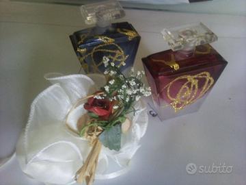 32 Bottigliette vetro satinato decorate NUOVE