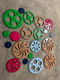 Bellismi ingranaggi nuovi in plastica di 4 diverse dimensioni, perfetti per arredamento negozio o camera bambini.