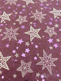 Confezione da 38 buste regalo metallizzate per confezionamento pacchetti di Natale: 9 pezzi con sfondo viola e stampa di stelle bianche, rosa e grigie, 29 pezzi con sfondo bordeaux e stampa di stelle rosa e oro, marchio Piennepi, alta qualità made in Italy, misura 35x50 cm.