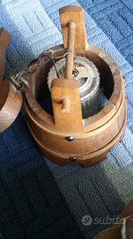 In legno originale prodotto per locali commerciali norcineria pub sala ricevimento abitazione rustica utilizzi svariati.Nessun segno di tarlo in situazione perfetta e conservato all asciutto.Attacco luce grande anche a risparmio energetico,led con portalampada 220v.Per le misure effettive guardare la foto.Può essere montato a parete o a soffitto secondo vostra esigenza