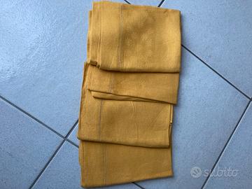 Quattro asciugamani in puro cotone operato con piccoli fiori colore senape. Dimensioni 100x56 cm. Nuovi, mai usati.