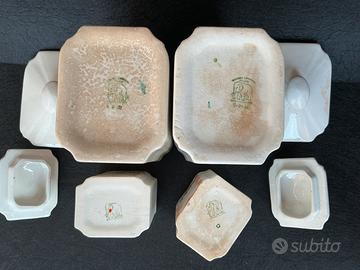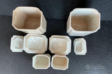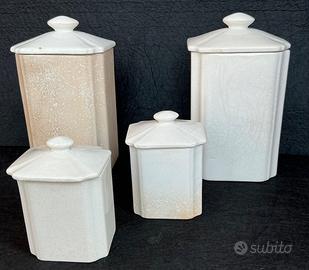 4 barattoli in ceramica anni 40/50 Ceramica Lombarda Milano con il famoso simbolo dell’elefantino, sono tenuti bene visto gli anni che anni che hanno, piccola scheggiatura all’Interno di un coperchio grande, niente di preoccupante non si vede quando è chiuso, posso inviare altre foto o video prima di comprare, misura grande 19x10x8 cm. Piccolo 10x7x5 cm. Eventuali cambi di colore tra contenitore e normale su oggetti di quegli anni vedi bene le foto, spedizione a carico vostro ritiro a mano a Parabiago