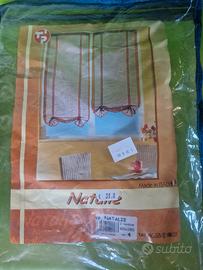 4 tende verde chiaro con dettagli in marrone, arancione e giallo. Regolabili come da foto con clip se non si vuole coprire tutta la finestra. Sede per asta a scomparsa. Misure 60x180. Custodia originale. Vedo a metà prezzo, da non perdere!