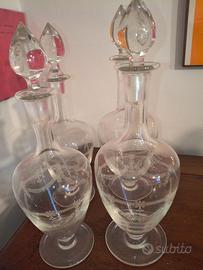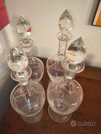 Vendo set di 4 bottiglie / decanter in cristallo originale, stile Liberty, risalenti agli anni ’40.
